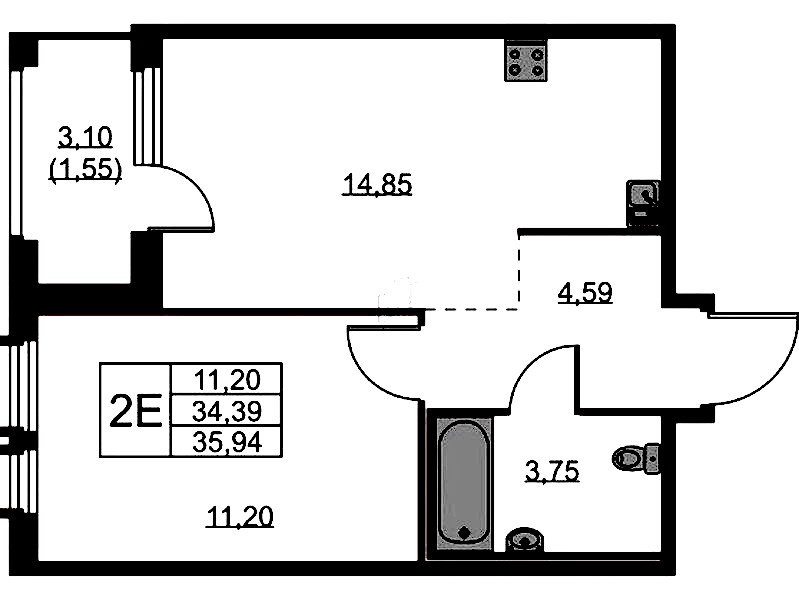 Однокомнатная квартира на 9-ом этаже 35,94 кв.м