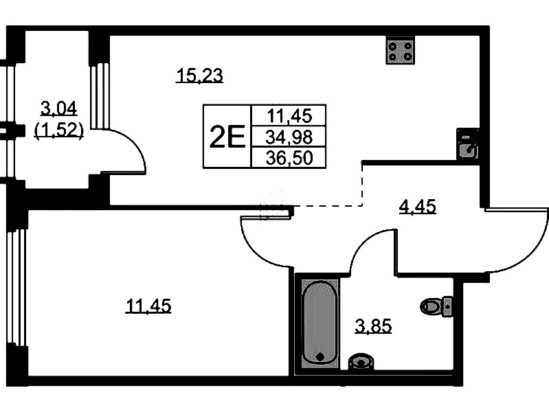 - Площадь кухни15,23 м2