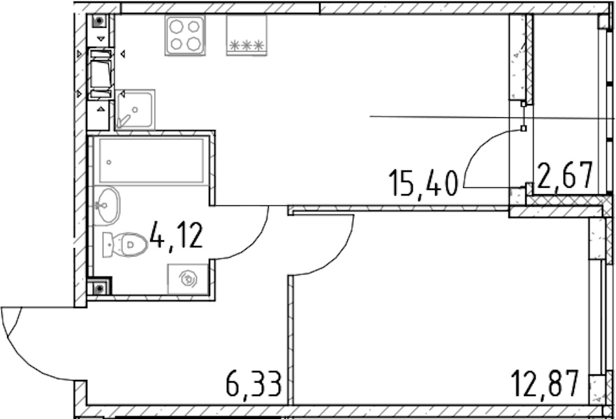 Однокомнатная квартира на 17-ом этаже 38,72 кв.м