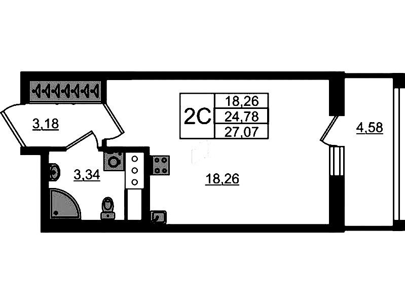 - Площадь24,78 м2