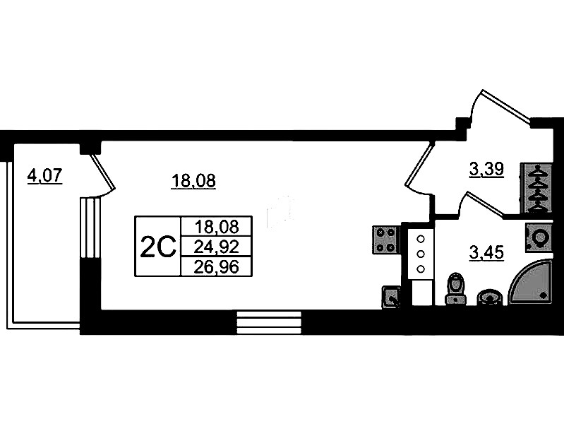 Квартира-студия на 8-ом этаже 24,92 кв.м