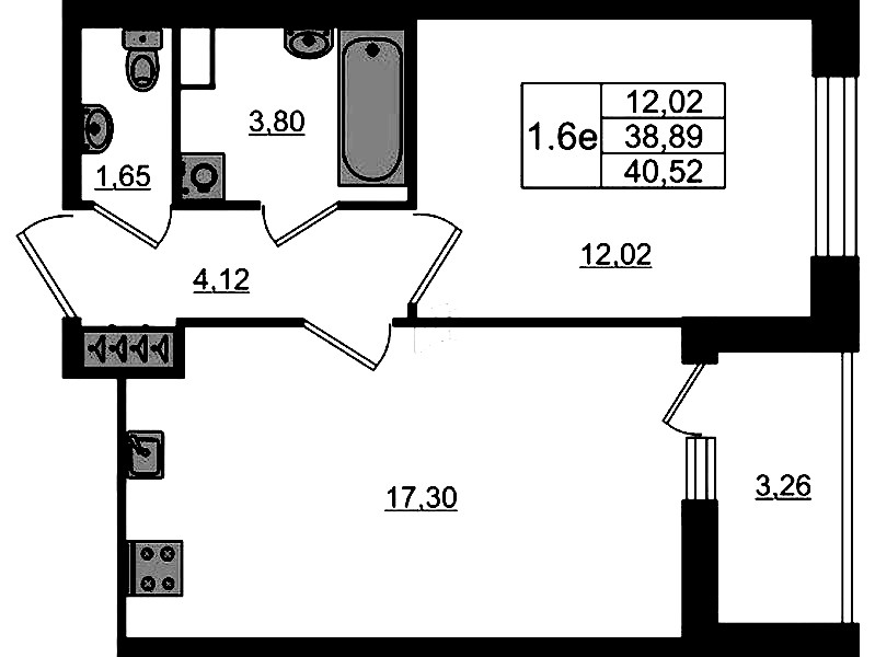 - Площадь38,89 м2