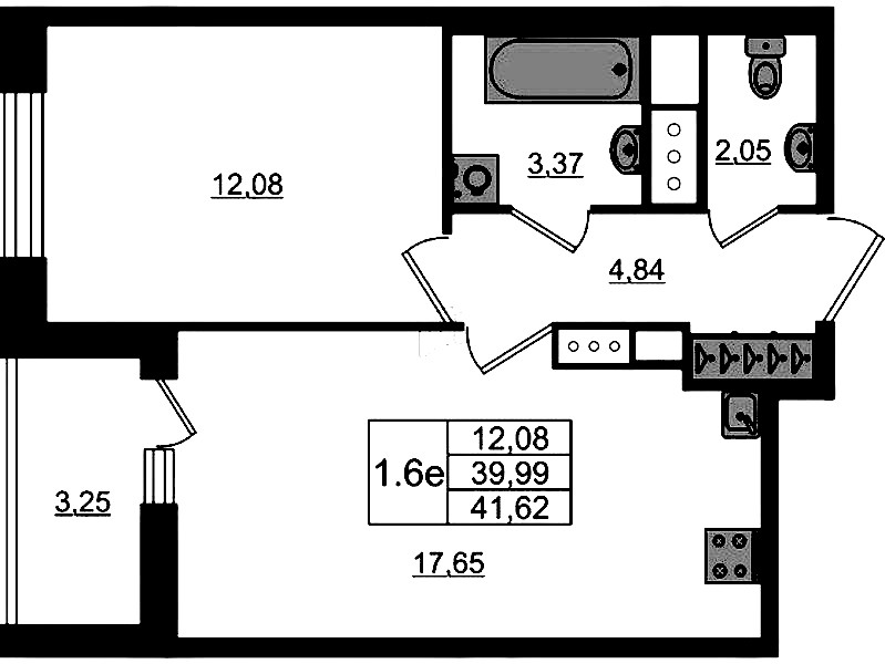Однокомнатная квартира на 13-ом этаже 39,99 кв.м