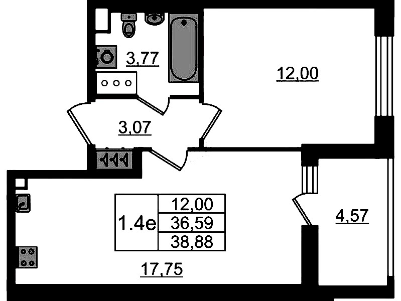 • Площадь кухни17,75 м2