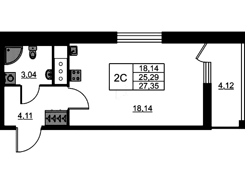 - Площадь25,29 м2