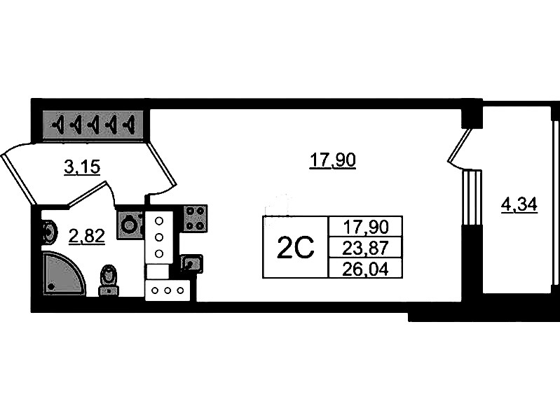 - Площадь23,87 м2