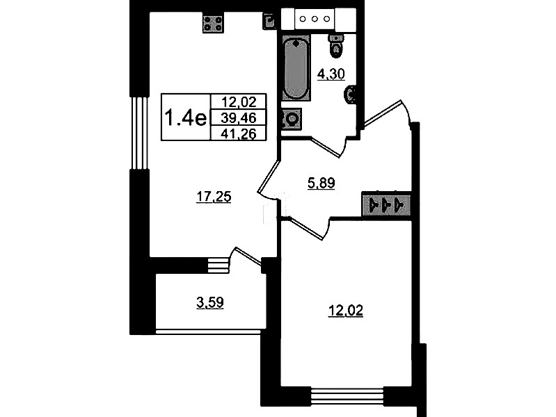 - Площадь39,46 м2