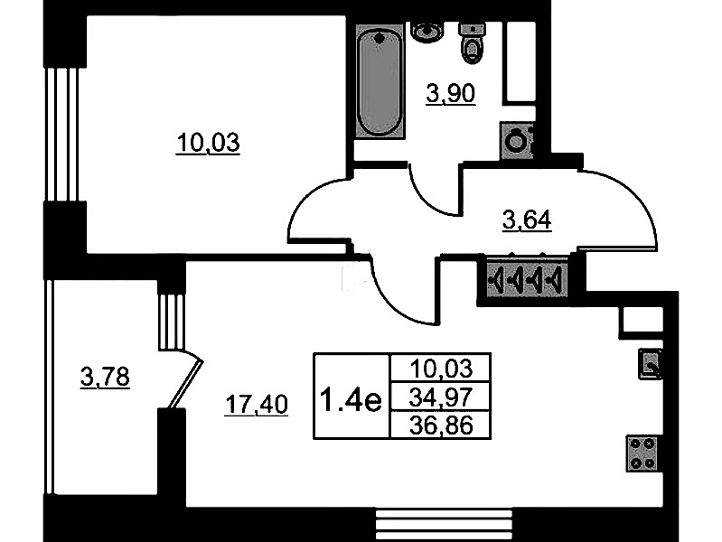 Однокомнатная квартира на 1-ом этаже 34,97 кв.м