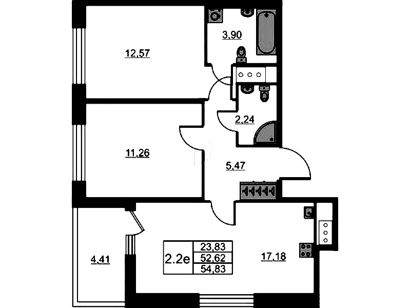 - Площадь52,62 м2