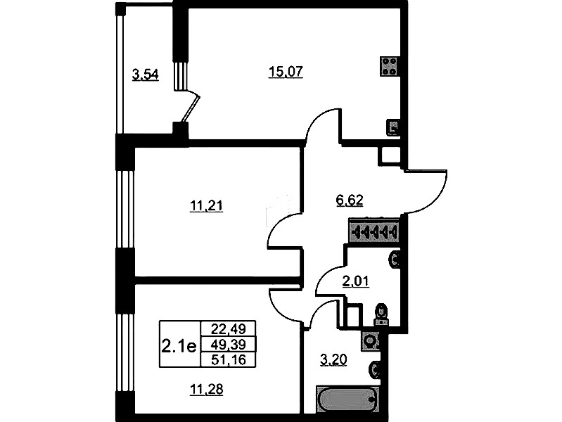 Двухкомнатная квартира на 1-ом этаже 49,39 кв.м