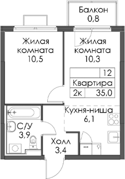 - Площадь35 м2