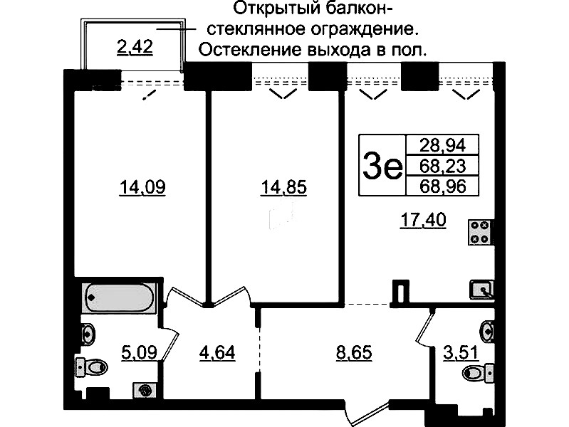 Двухкомнатная квартира на 5-ом этаже 68,23 кв.м