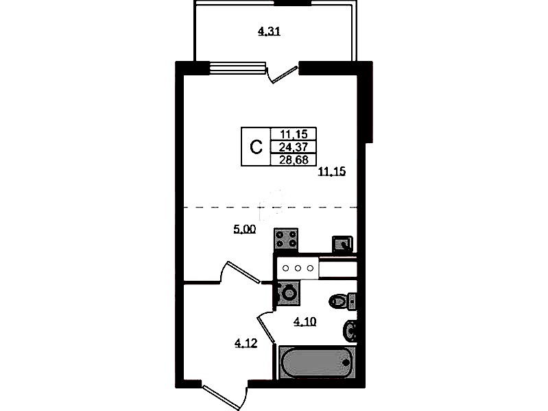 Квартира-студия на 6-ом этаже 24,37 кв.м