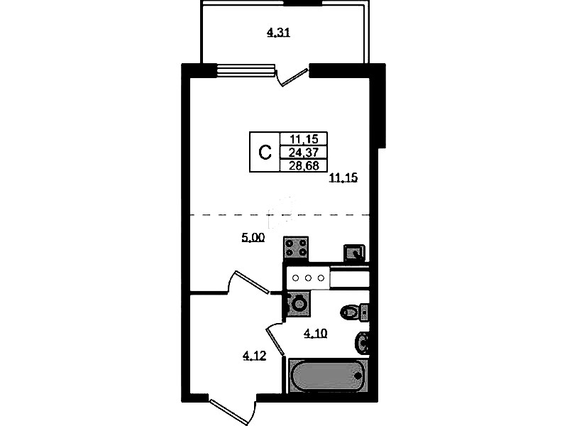 Квартира-студия на 2-ом этаже 24,37 кв.м