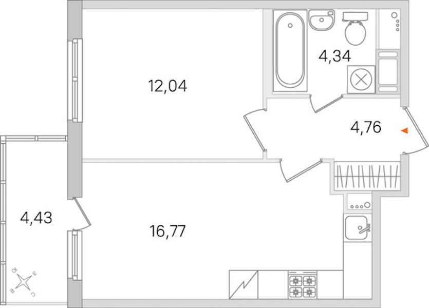 Однокомнатная квартира на 5-ом этаже 37,91 кв.м