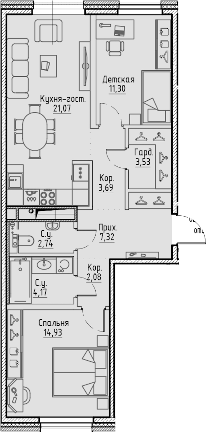 Двухкомнатная квартира на 4-ом этаже 70,83 кв.м