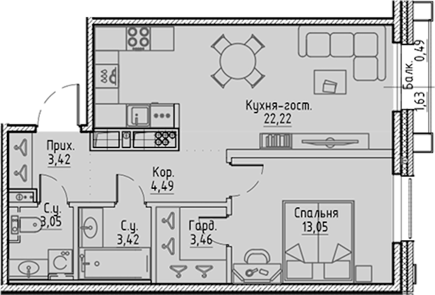• Площадь кухни22,22 м2