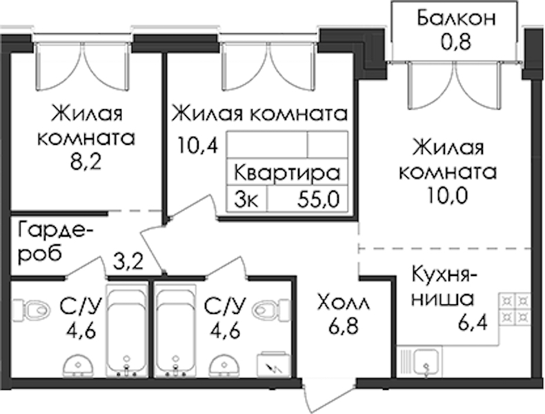 - Площадь55 м2