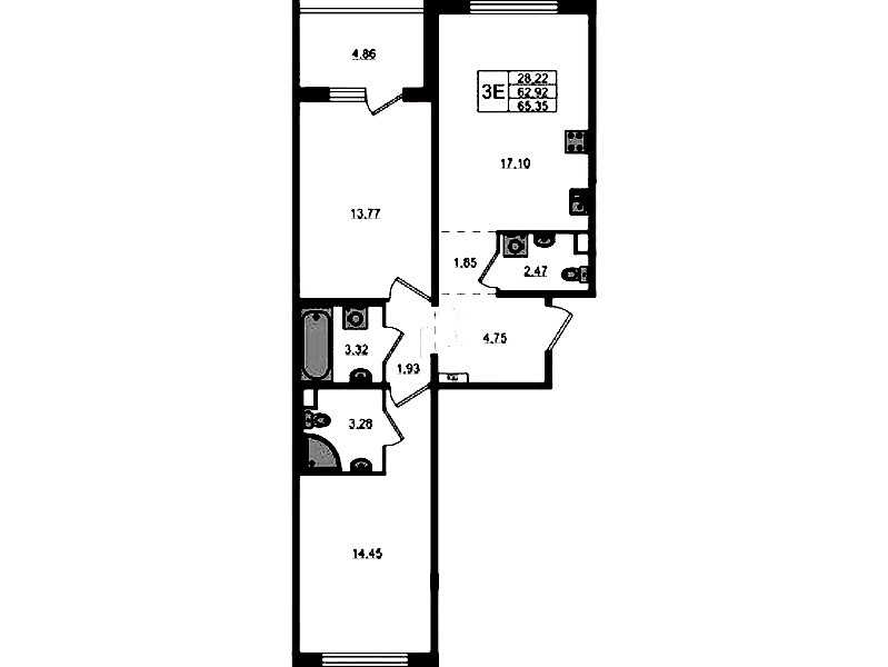 Двухкомнатная квартира на 4-ом этаже 65,35 кв.м