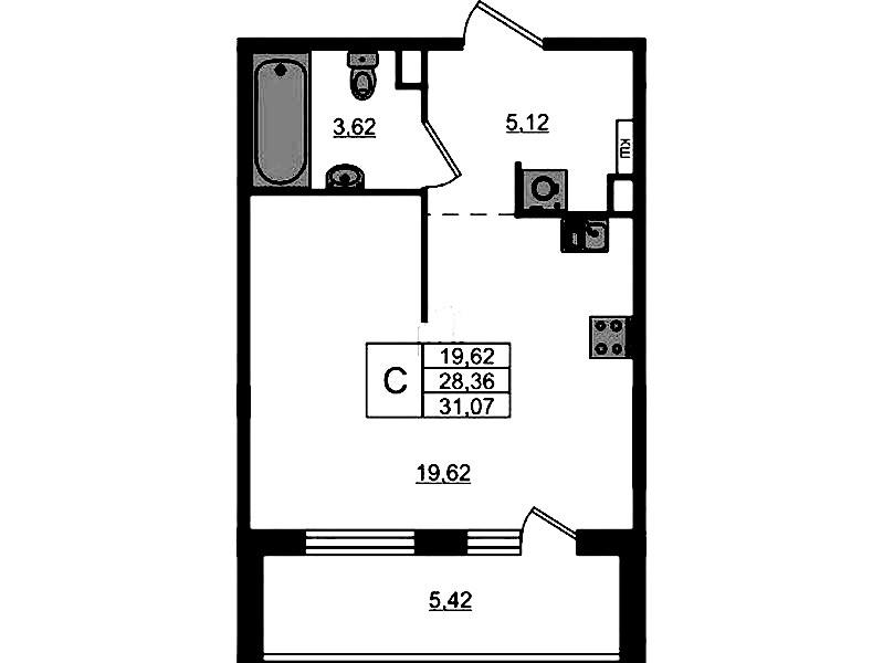 - Площадь31,07 м2