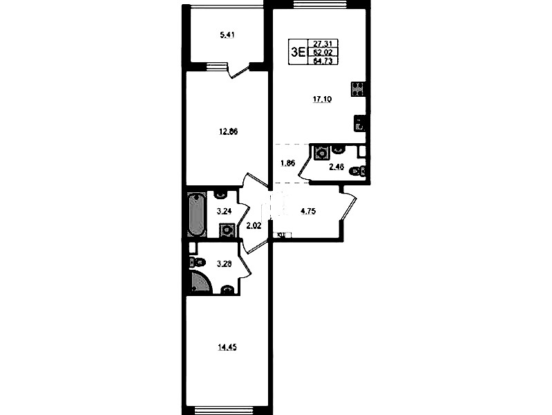 Двухкомнатная квартира на 4-ом этаже 64,73 кв.м