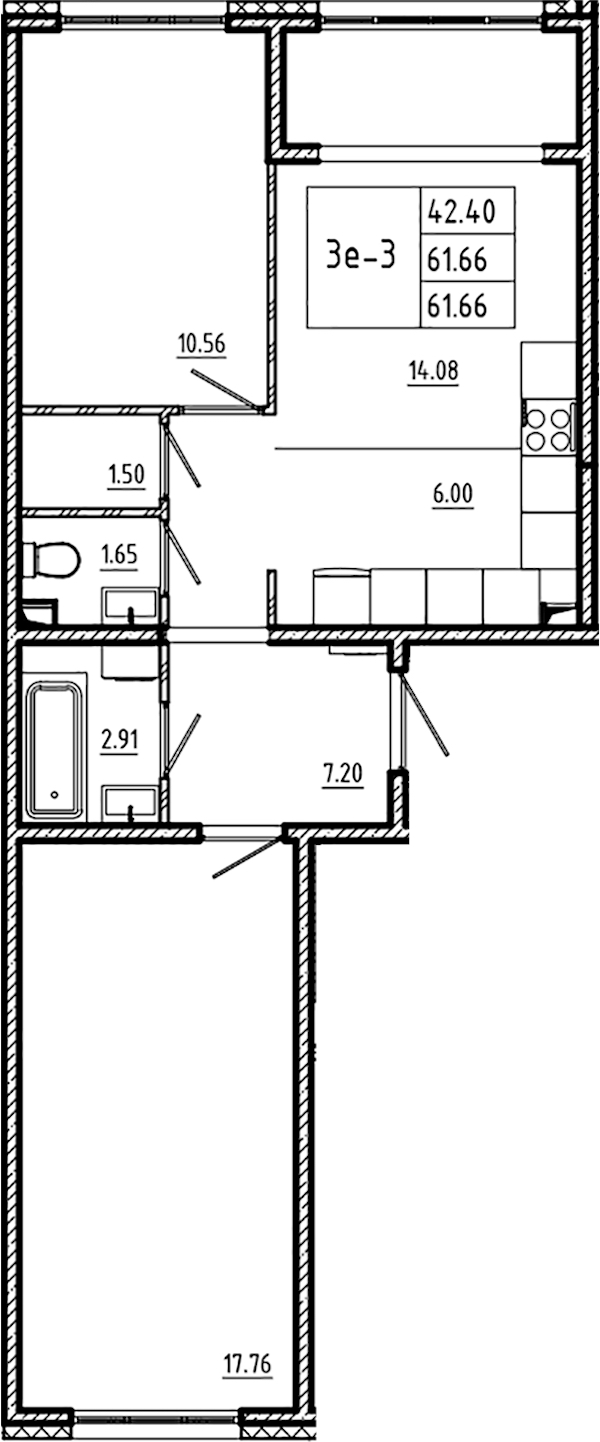 - Площадь61,66 м2