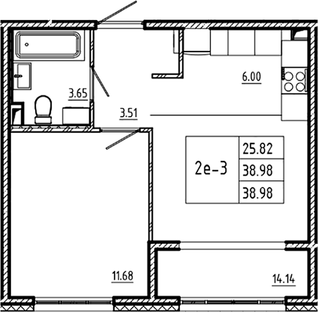 Однокомнатная квартира на 1-ом этаже 38,98 кв.м