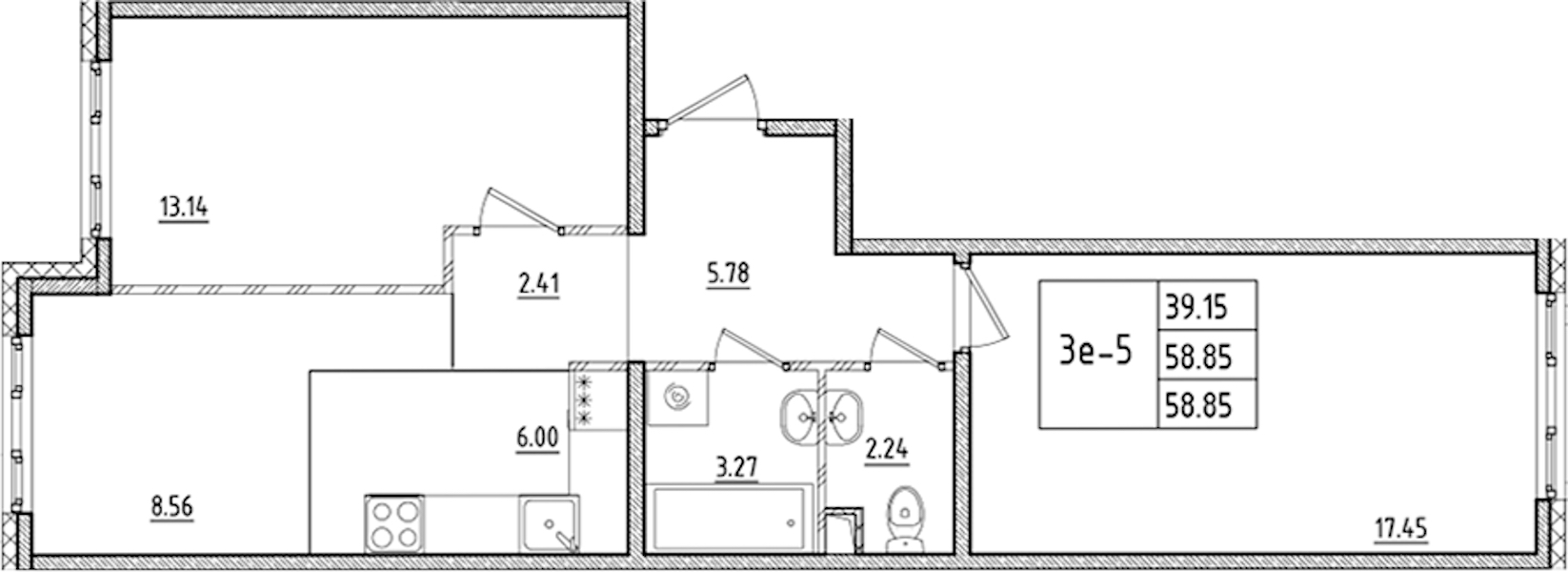 Двухкомнатная квартира на 1-ом этаже 58,85 кв.м