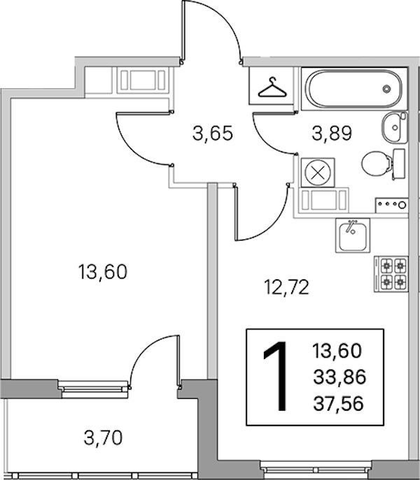 Однокомнатная квартира на 4-ом этаже 35,71 кв.м
