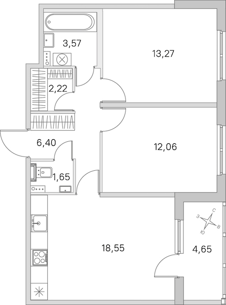 • Площадь кухни18,55 м2