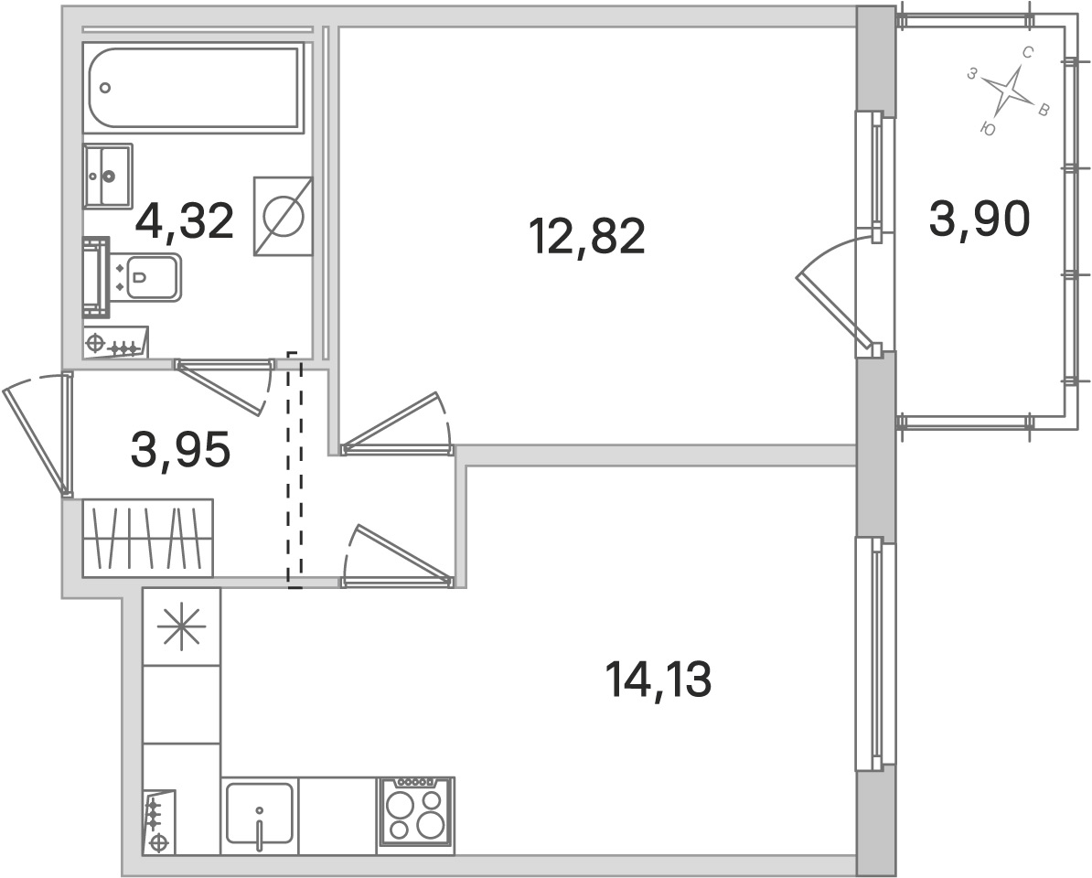 • Площадь кухни14,13 м2