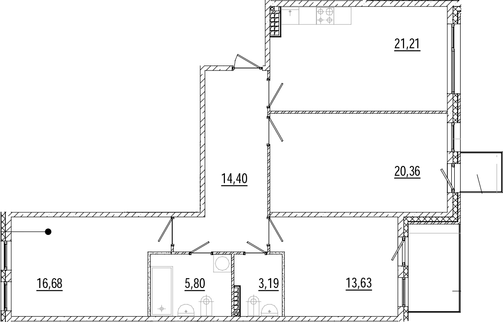 Трёхкомнатная квартира на 6-ом этаже 97,27 кв.м