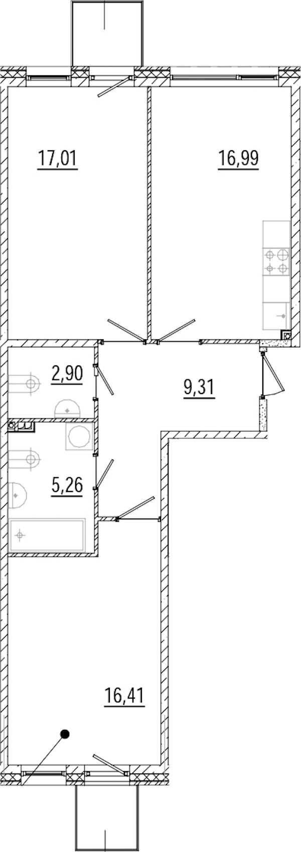 Двухкомнатная квартира на 2-ом этаже 68,92 кв.м