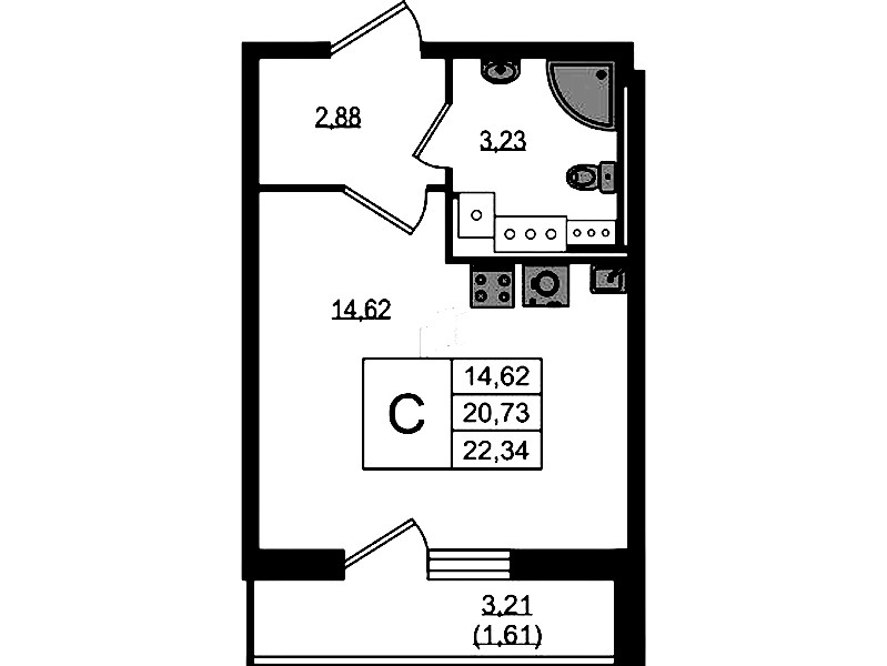 - Площадь22,34 м2