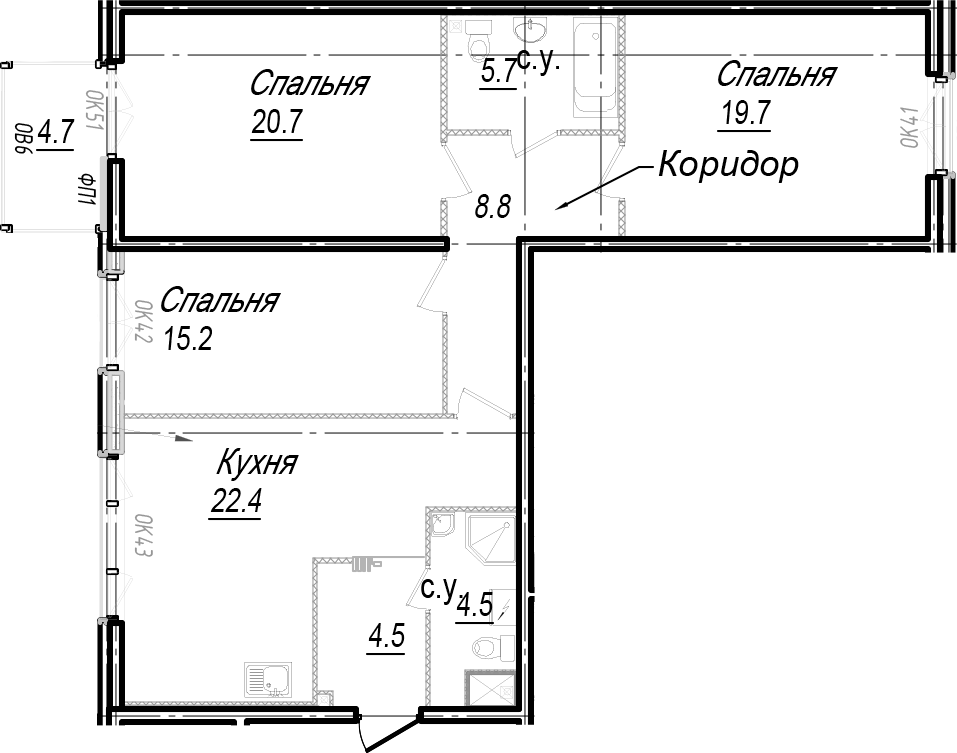 Трёхкомнатная квартира на 5-ом этаже 101,7 кв.м