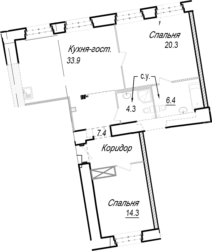 - Площадь кухни33,9 м2