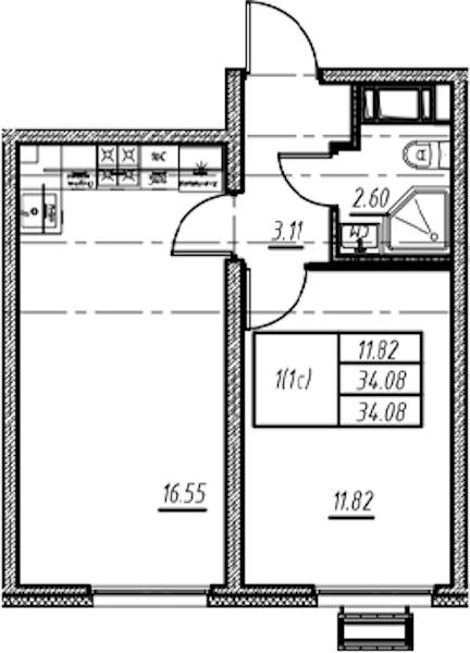 • Площадь34,08 м2