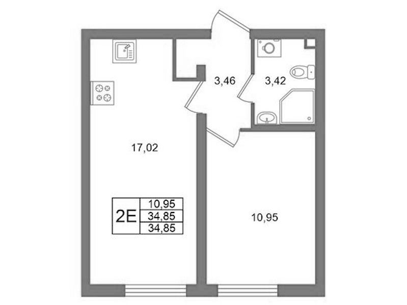 - Площадь34,85 м2