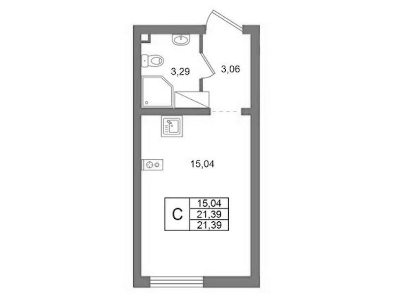 Квартира-студия на 8-ом этаже 21,39 кв.м