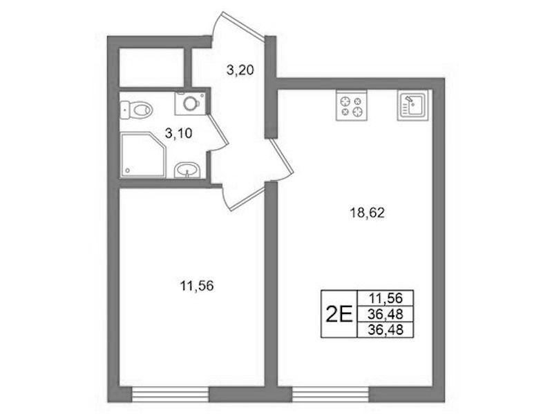 Однокомнатная квартира на 10-ом этаже 36,48 кв.м