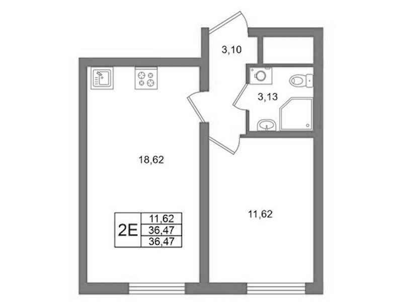 Однокомнатная квартира на 10-ом этаже 36,47 кв.м