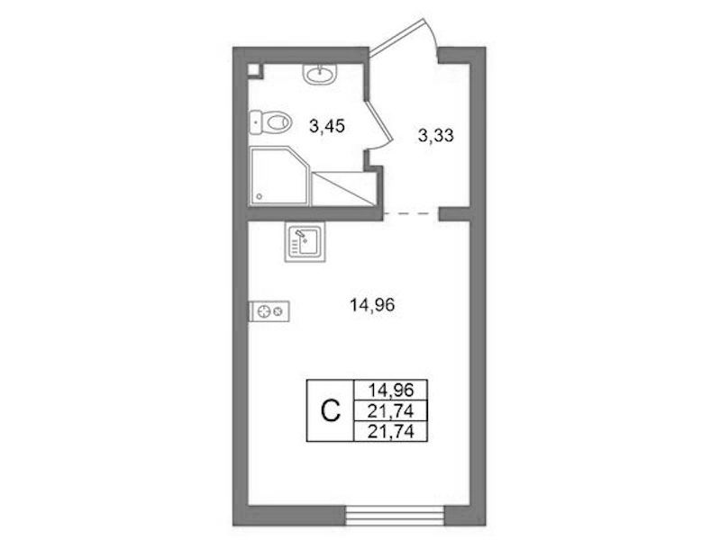 Квартира-студия на 12-ом этаже 21,74 кв.м