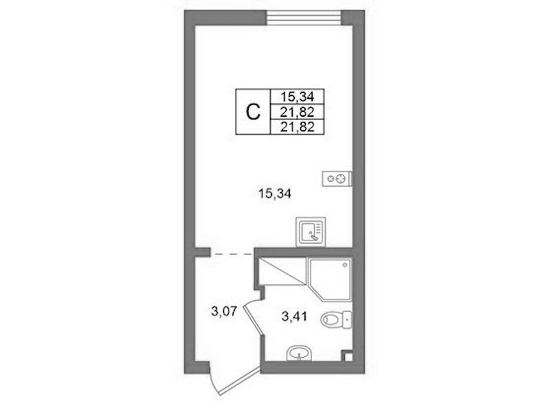 Квартира-студия на 14-ом этаже 21,82 кв.м