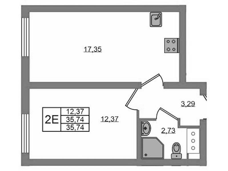 Однокомнатная квартира на 14-ом этаже 35,62 кв.м