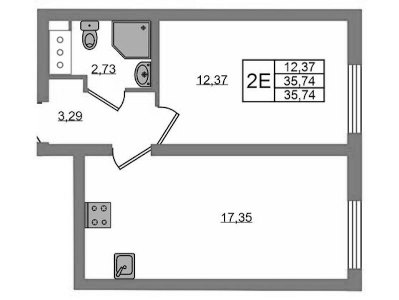 Однокомнатная квартира на 11-ом этаже 35,62 кв.м