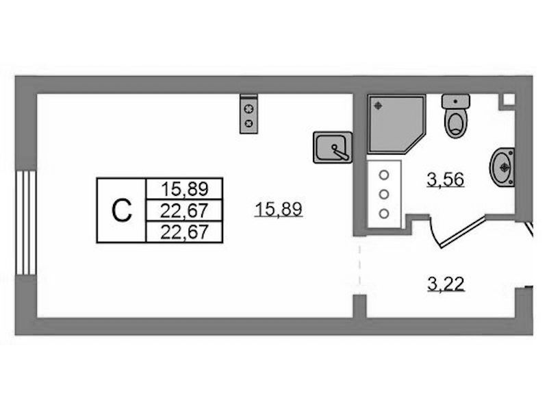 Квартира-студия на 9-ом этаже 22,67 кв.м