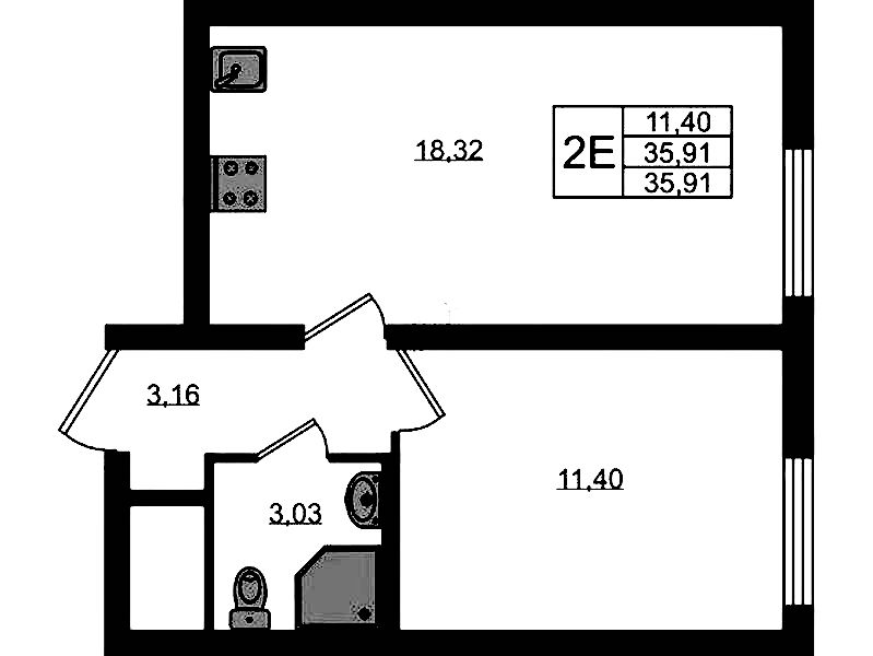 Однокомнатная квартира на 4-ом этаже 35,9 кв.м