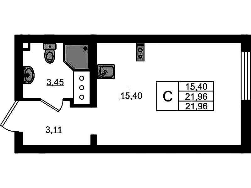 - Площадь22 м2