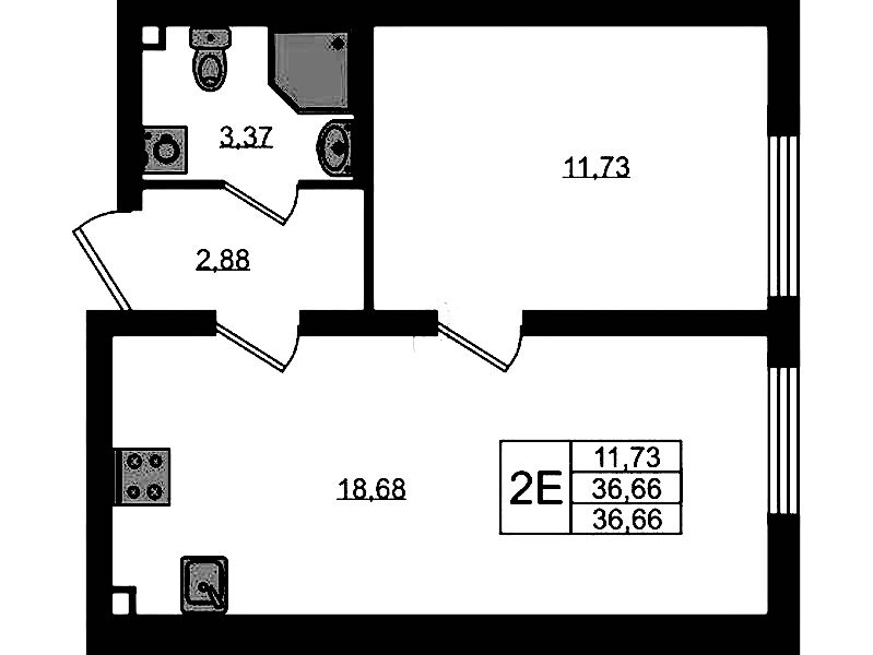 Однокомнатная квартира на 12-ом этаже 36,66 кв.м