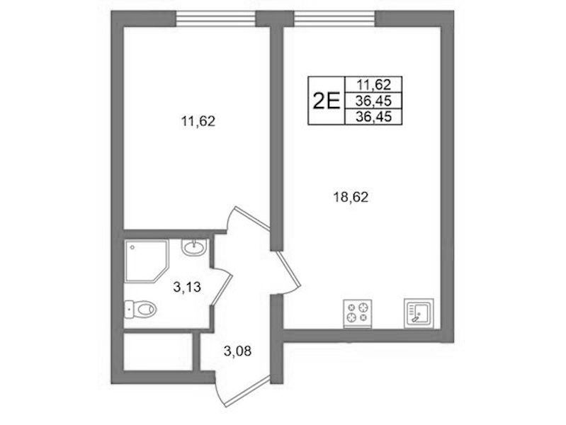 Однокомнатная квартира на 8-ом этаже 36,45 кв.м